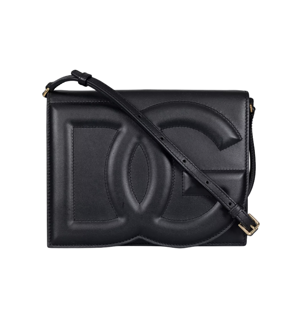 DOLCE & GABBANA Black Calfskin DG Logo Crossbody Bag